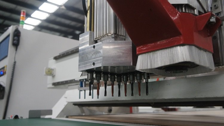 The machine can be equipped with 5+4 vertical drilling bank or 9 vertical + 6 horizontal drilling+ 1 saw blade according to the customer’s need.